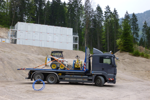 Anlieferung von Bauzäunen - Aufbau von ca. 2000 Metern Bauzaun - Radlader, Gabelstaplern und Baggern